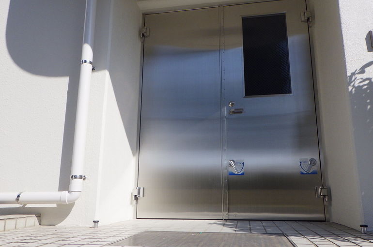湘南地域で、洪水時に水を堰き止めて内部に浸水しないように、止水ドアを設置いたしました。